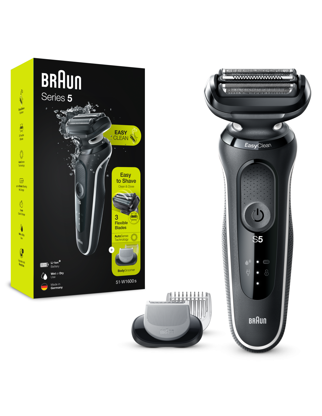 Braun Series 5 51-W1600s elektripardel ja keha raseerimistarvik, märg- ja kuivkasutus, laetav, juhtmeta võrguga pardel, valge