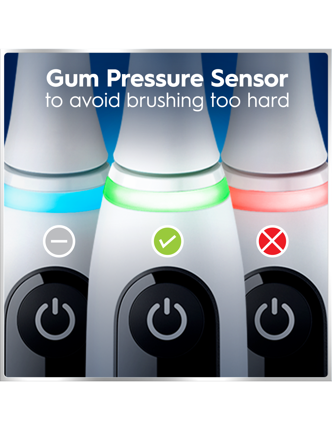 Nutikas surveandur näitab punast tuld, kui harjad liiga tugevalt, ja rohelist, kui harjad täpselt õigesti.