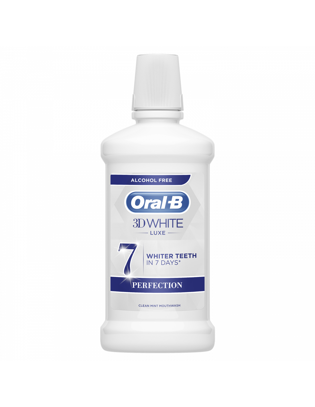 • Oral-B 3D White Luxe Perfectioni suuloputusvesi muudab 7-päevase harjamisel kasutamisega hambad valgemaks. See eemaldab pindmised plekid ja jätab suu värskeks ilma alkoholi tekitatud kõrvetustundeta.