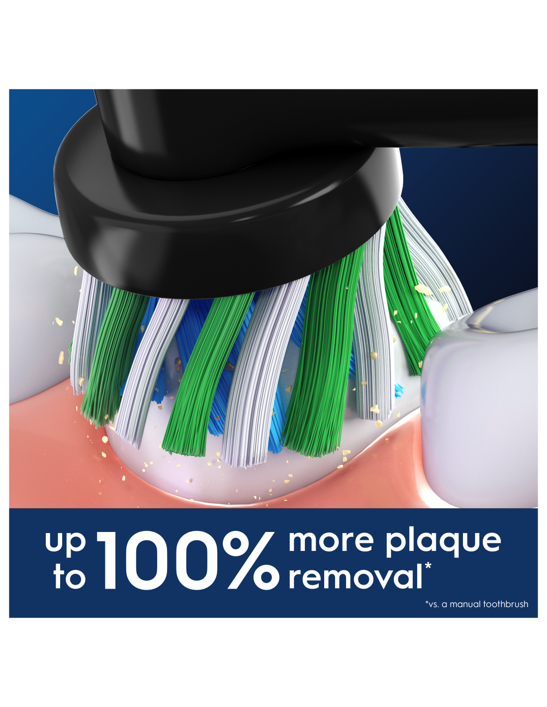 - Pašalina iki 100 % daugiau bakterinių apnašų, kad dantys būtų švaresni, o dantenos sveikesnės, palyginti su tradiciniais šepetėliais.