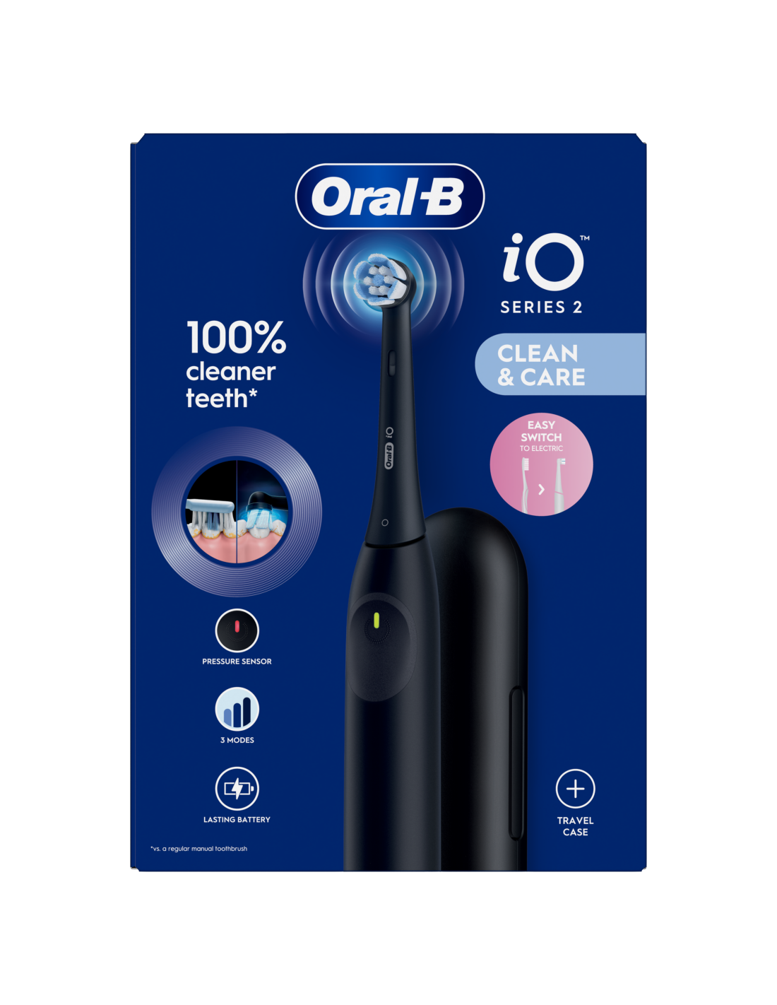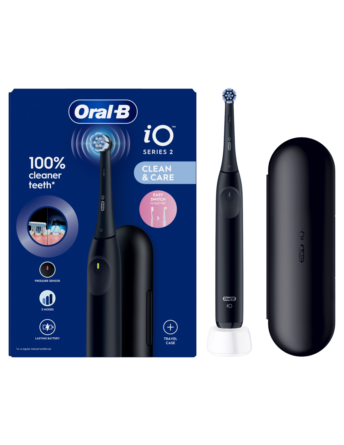 iOS2.1D9.2K Oral-B iO2 Elektrinis Dantų Šepetėlis Night Black + Kelioninis Dėklas