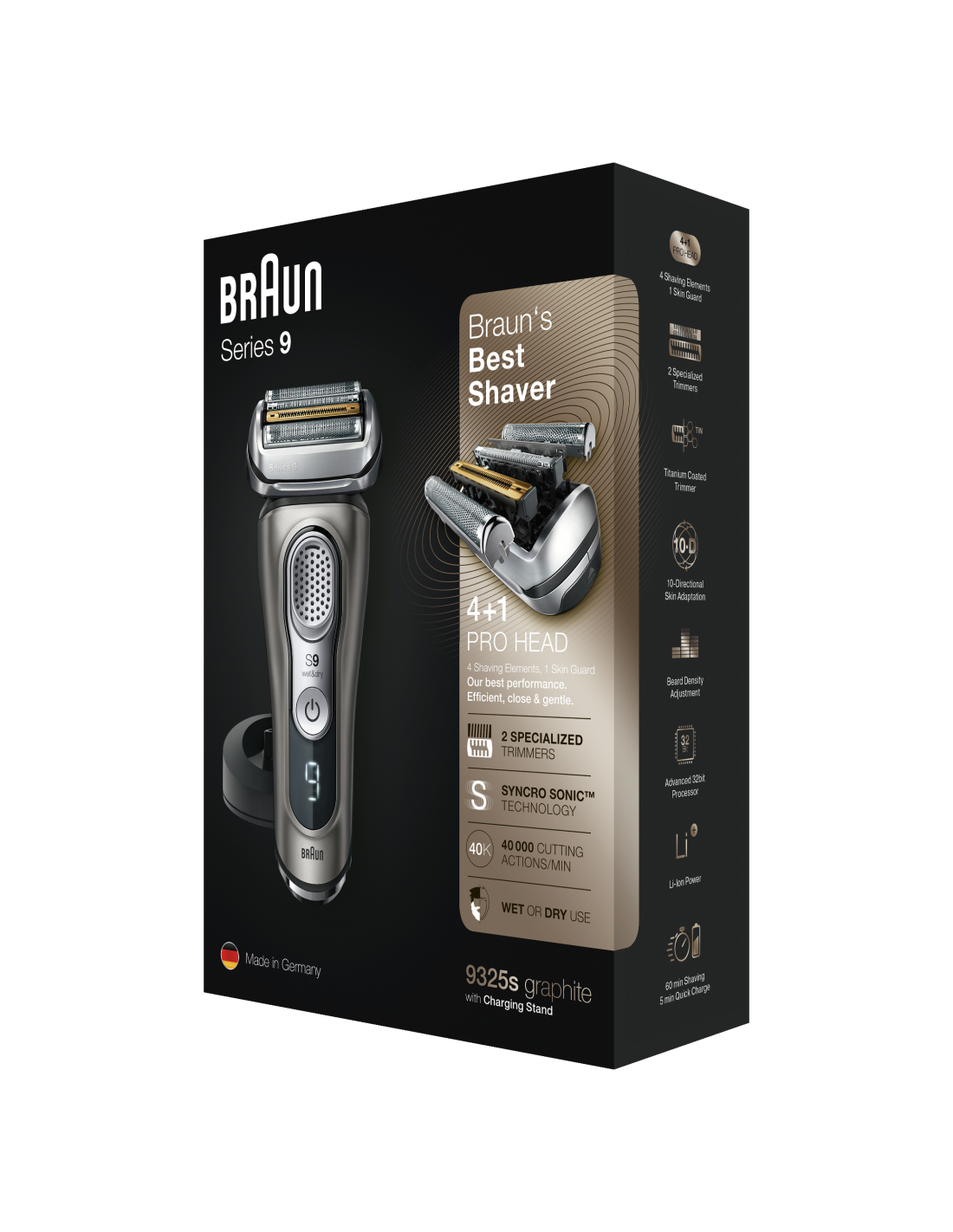 Series 9 barzdaskutės užtikrina greitą skutimąsi su mažiausiu odos dirginimu. Atkartoja smulkiausius veido kontūrus net sunkiausiai pasiekiamose veido srityse.