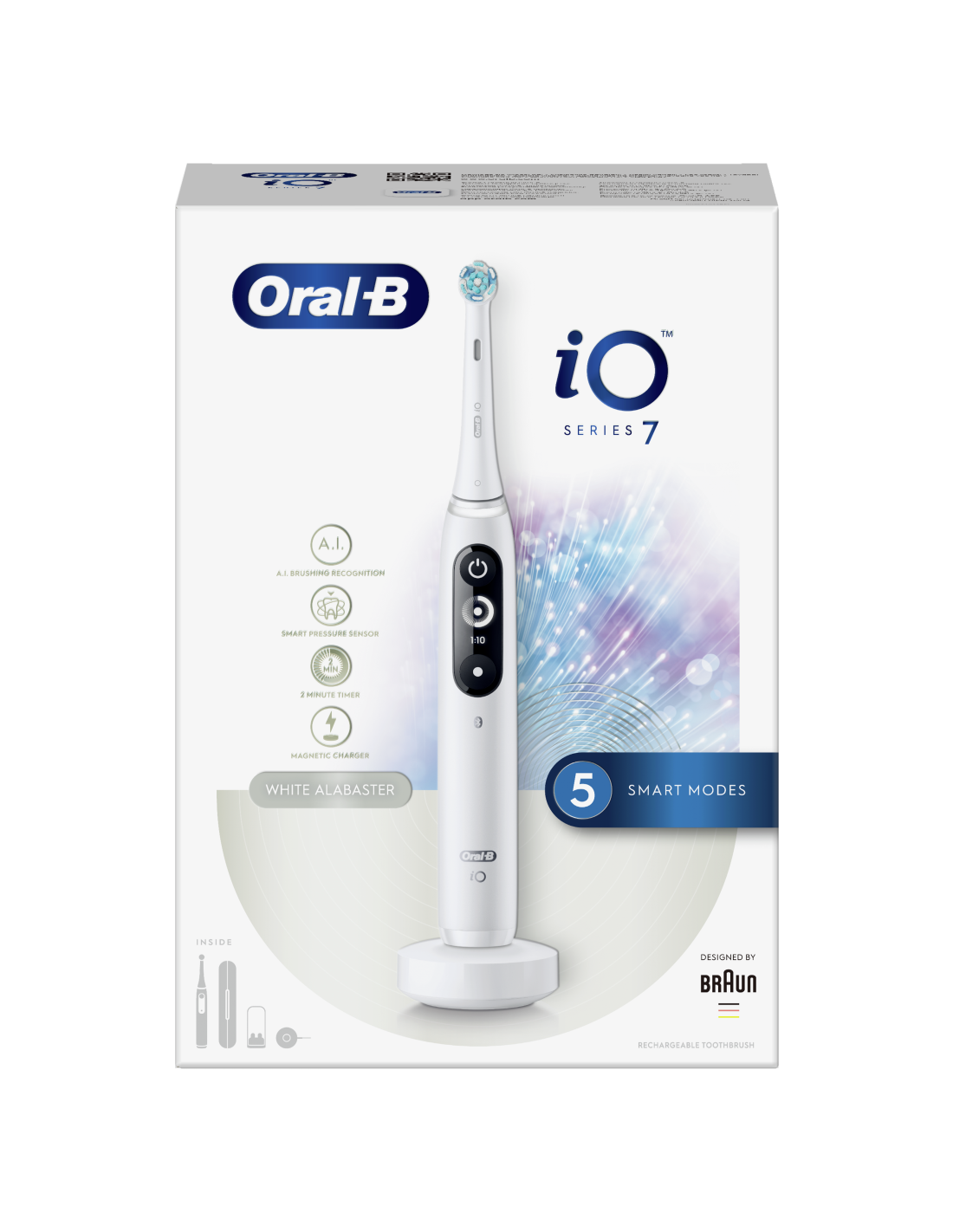 - iO™ ir Oral-B vislabākā zobu tīrīšanas tehnoloģija, kura apvieno mikrovibrējošo sariņu vienmērīgo enerģiju ar zobārstu iedvesmoto Oral-B apaļo zobu birstes galviņu. To darbina pasaulē pirmā vienmērīgas magnētiskās piedziņas sistēma.
