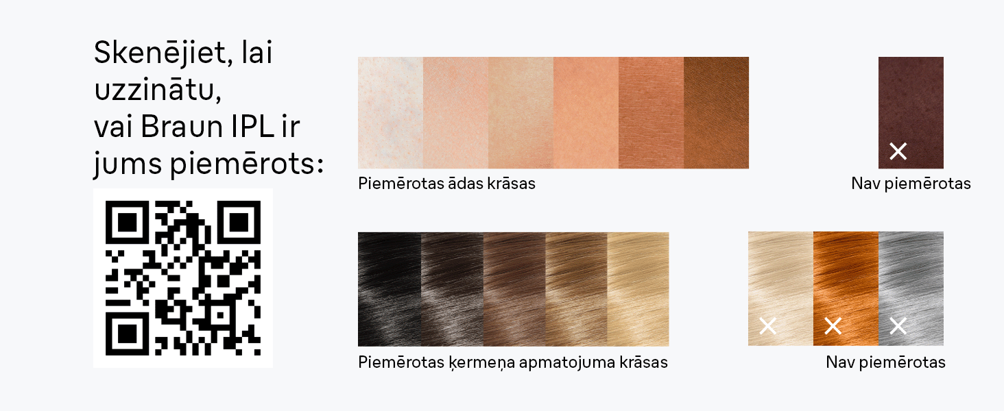 Nosaka ādas toni un pielāgo pareizo jaudu.