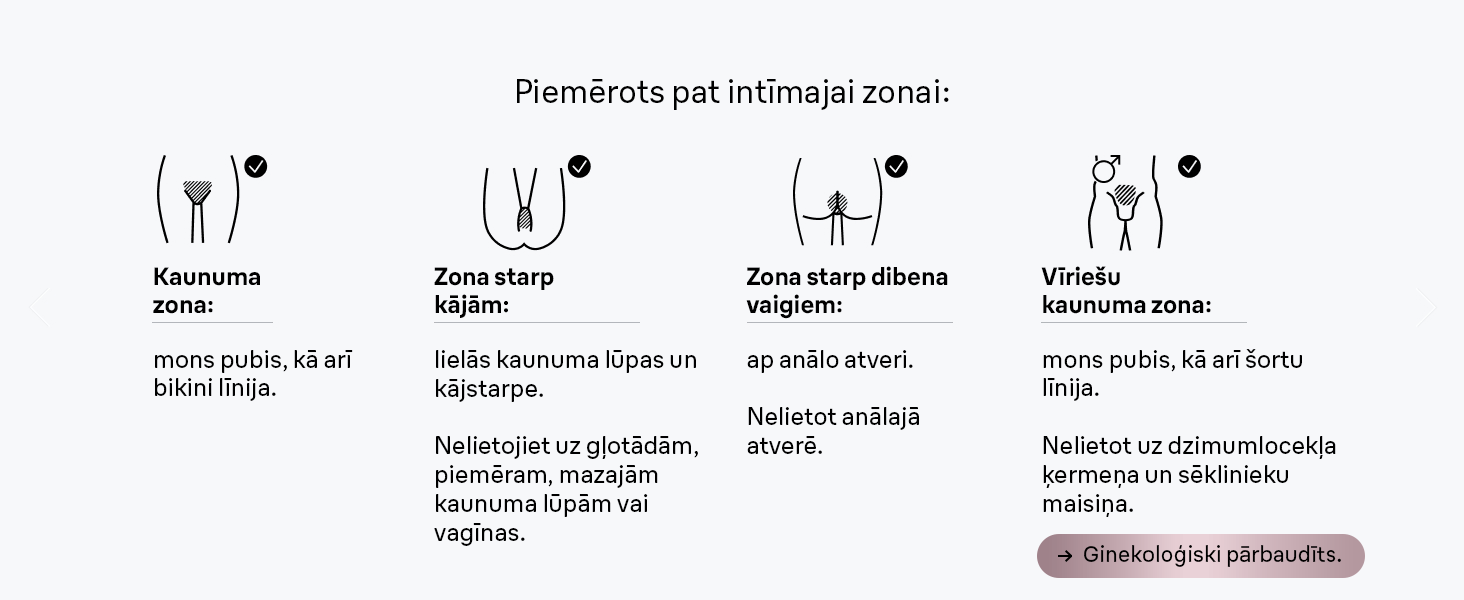 ³Kājas (augšstilbi un apakšstilbi), paduses, bikini zona, virslūpa.