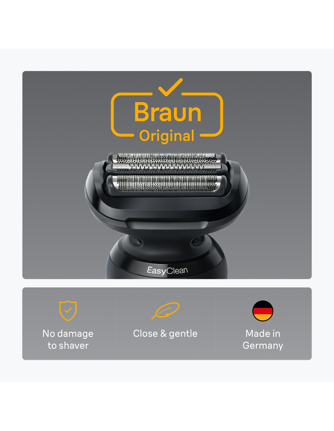 Braun ORIĢINĀLS: ražots Vācijā. Izmanto tikai Braun oriģinālās rezerves skuvekļa galviņas, lai izvairītos no skuvekļa bojājumiem.