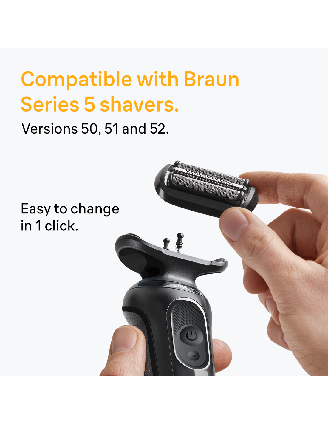Pārej uz jaunāko Series 5 skuvekļa galviņu. Saderīgs ar 50., 51. un 52. paaudzi. Viegli nomaināms tikai ar vienu klikšķi.