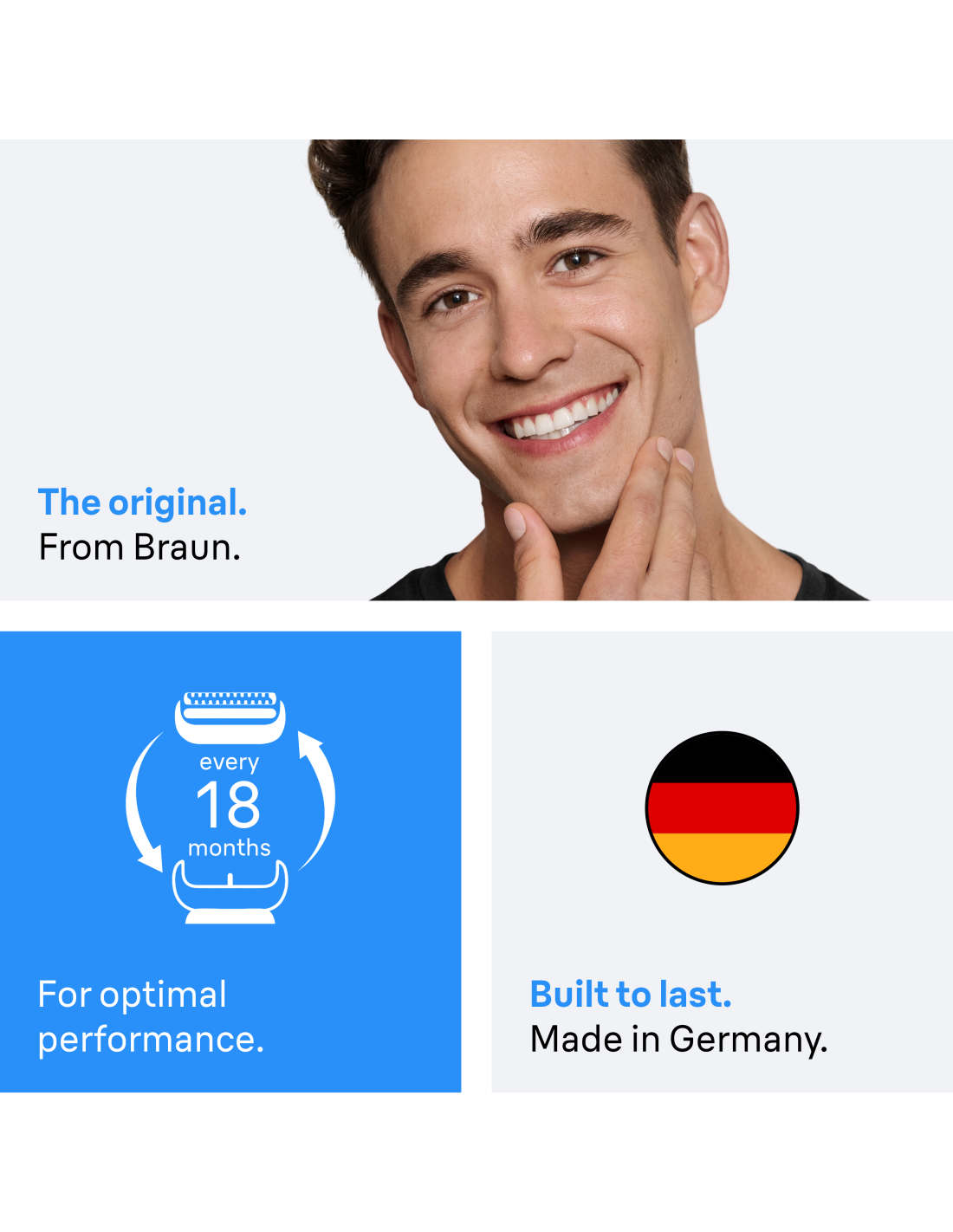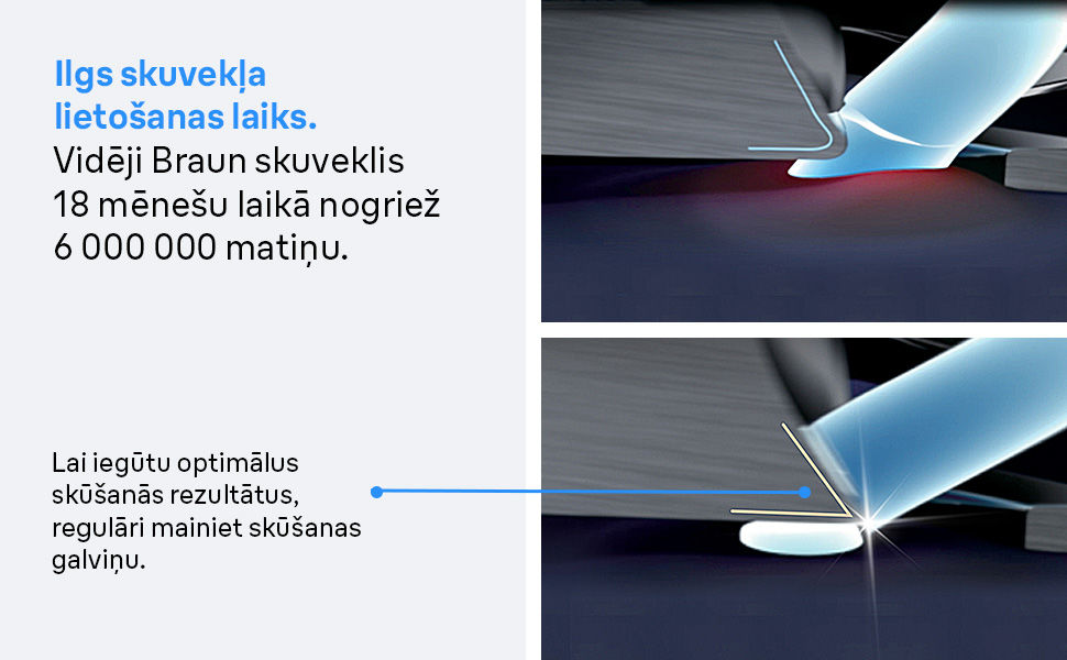 Braun ORIĢINĀLS: ražots Vācijā. Izmanto tikai Braun oriģinālās rezerves skuvekļa galviņas, lai izvairītos no skuvekļa bojājumiem.