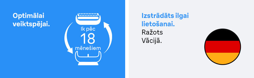 Atgūsti 100% skūšanās veiktspēju: optimālai skūšanai iesakām mainīt elektriskā skuvekļa galviņu ik pēc 18 mēnešiem.